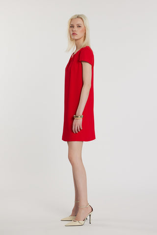 Abito STEPHANE corto maniche lunghe scollo a V con passante logo più pieghe