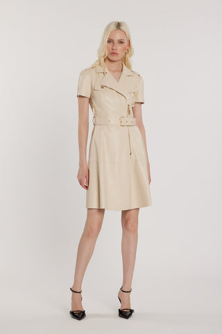 Abito GRACELLE midi maniche lunghe effetto chiodo con zip più cintura con gonna a campana ecopelle
