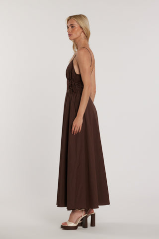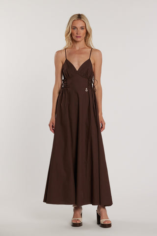 Abito MORELL lungo smanicato scollo americana con apertura sulla schiena più fusciacca più balza