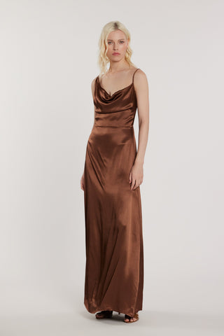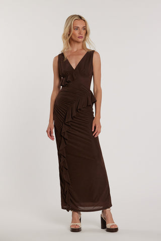 Abito LANE lungo smanicato doppio scollo a V con pieghe più arricci più rouches