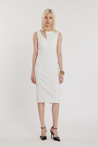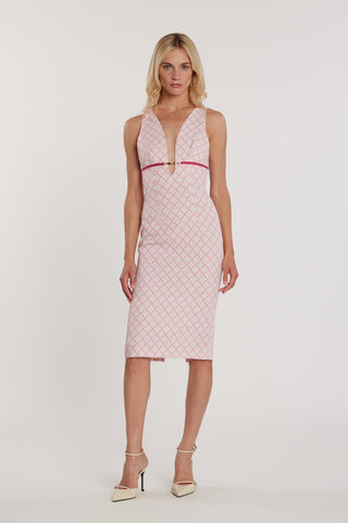Abito CASSELI midi smanicato tubino scollo a V più dettagli cintura st.logo all over