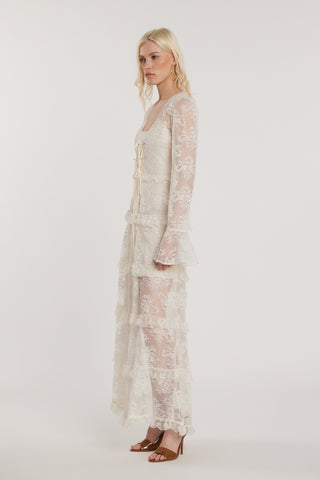 Abito BECKAM lungo maniche lunghe con sottoveste con laccetti più rouches pizzo