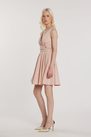 Abito COLLARD corto smanicato scollo a V con pieghe in vita più gonna a ruota