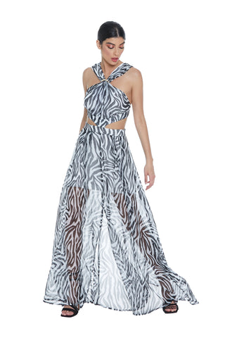 Abito ALGEDI lungo top scollato più accessorio più spacco davanti fantasia zebra