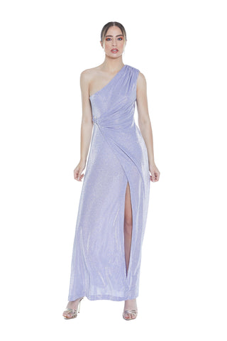 Abito ALTAIR lungo monospalla con pannello davanti arricci più gancio glitter