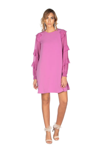 Abito SAFRUYI corto m.3/4 scollo ampio con rouches animalier