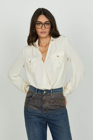Camicia JUWELL manica lunga con tasche con strass più borchie più patte