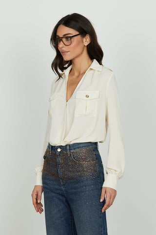 Camicia ARIA_S corta manica lunga incr.con fusciacca più patte più pietre strass