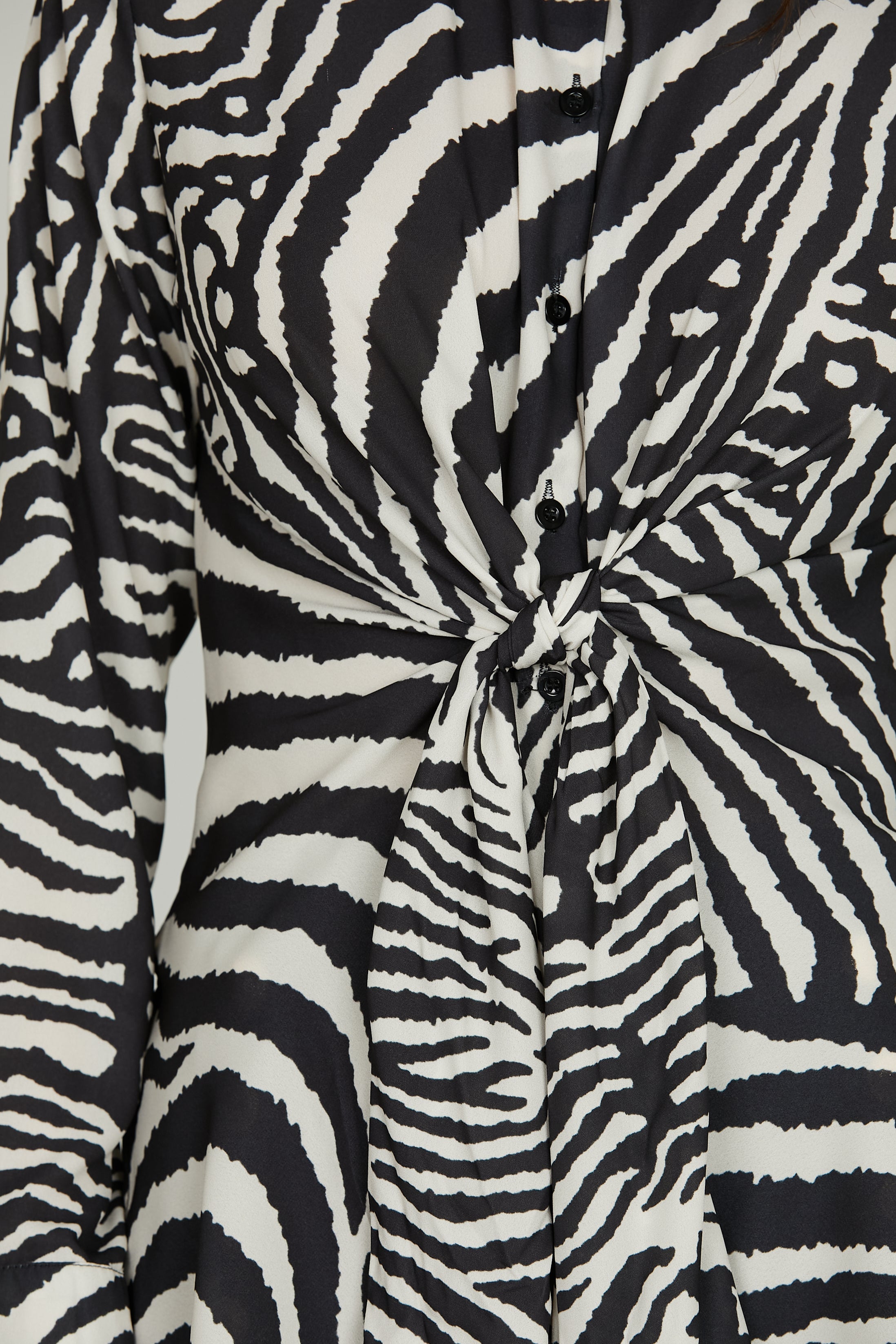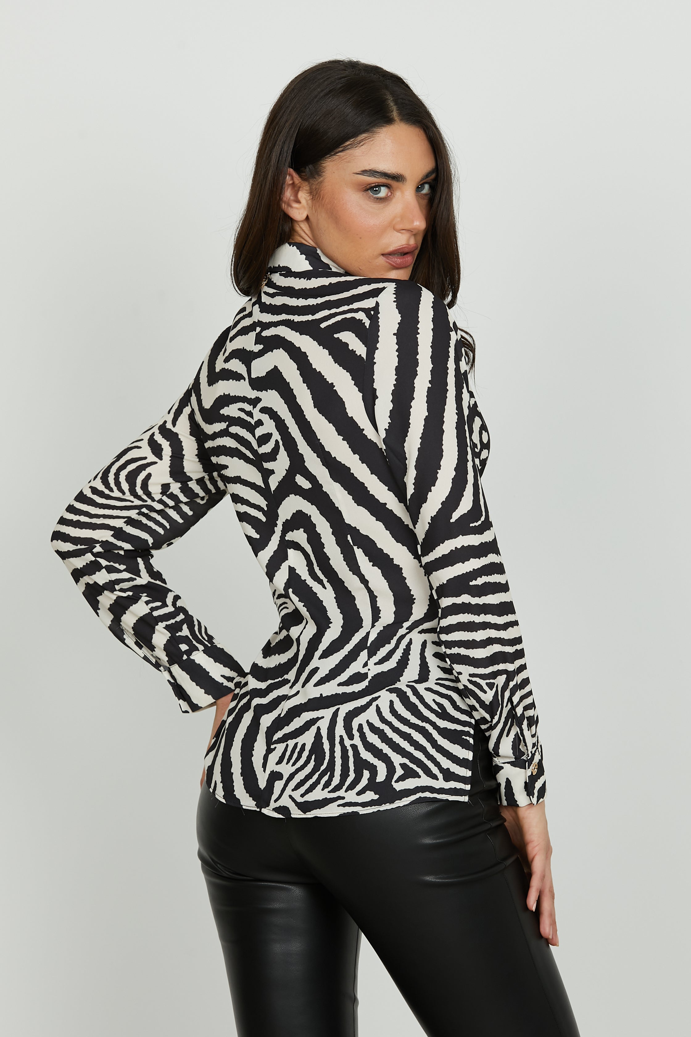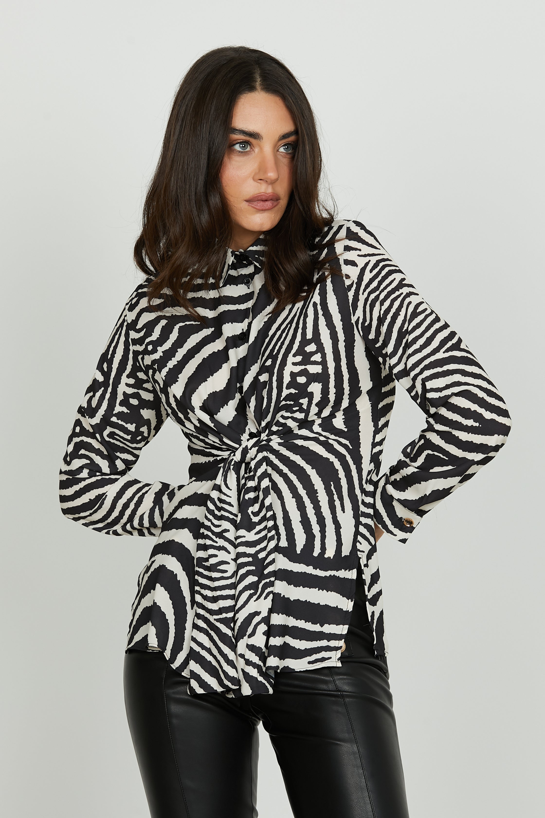 Grintosa ma raffinata, la camicia Impera è realizzata interamente in una vivace fantasia animalier, per un look che non passa inosservato. Il fiocco sul davanti aggiunge un tocco di femminilità sofisticata, mentre gli spacchi laterali donano movimento e leggerezza. Con maniche lunghe e un taglio fluido, è il capo perfetto per chi ama un’eleganza dal carattere deciso.