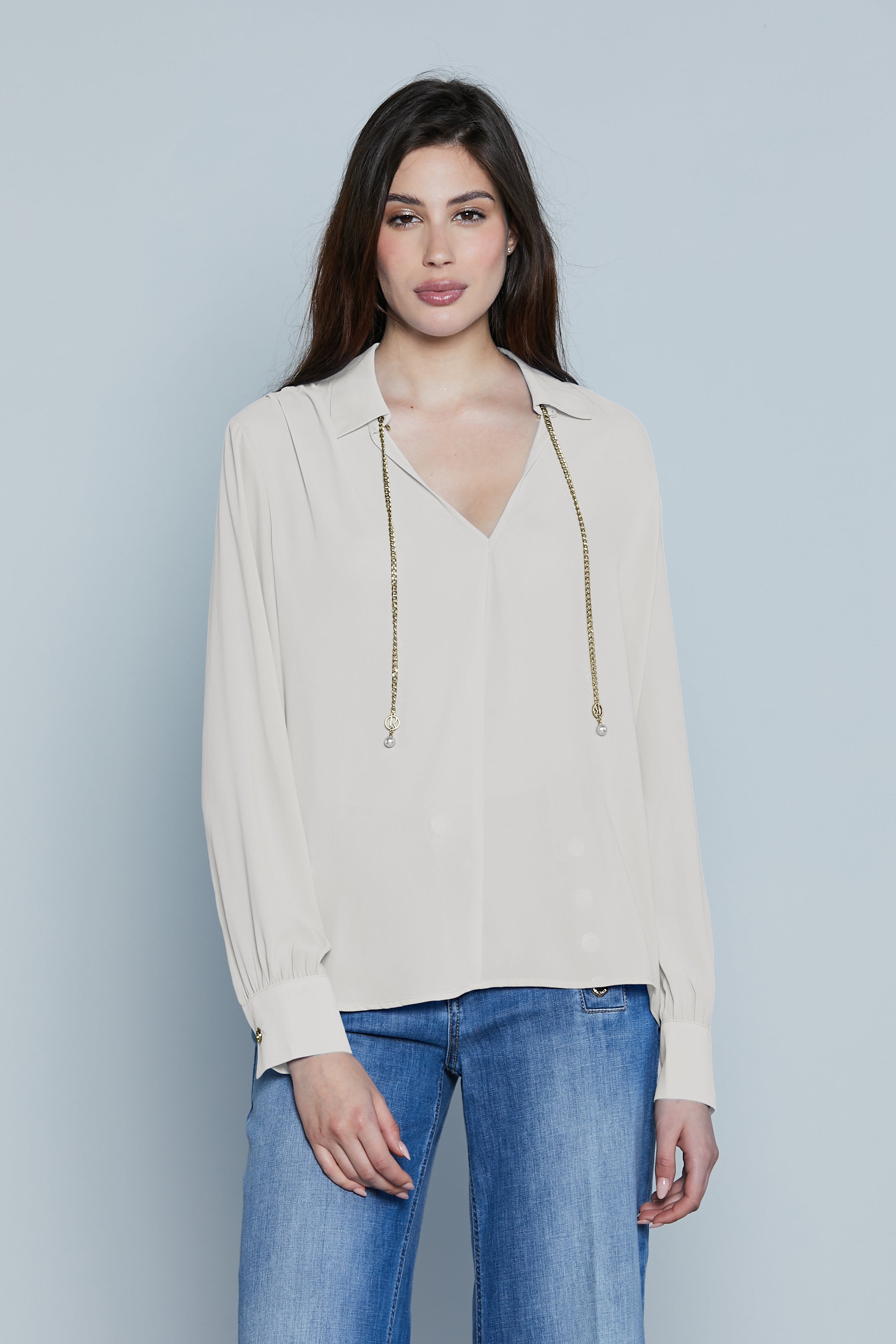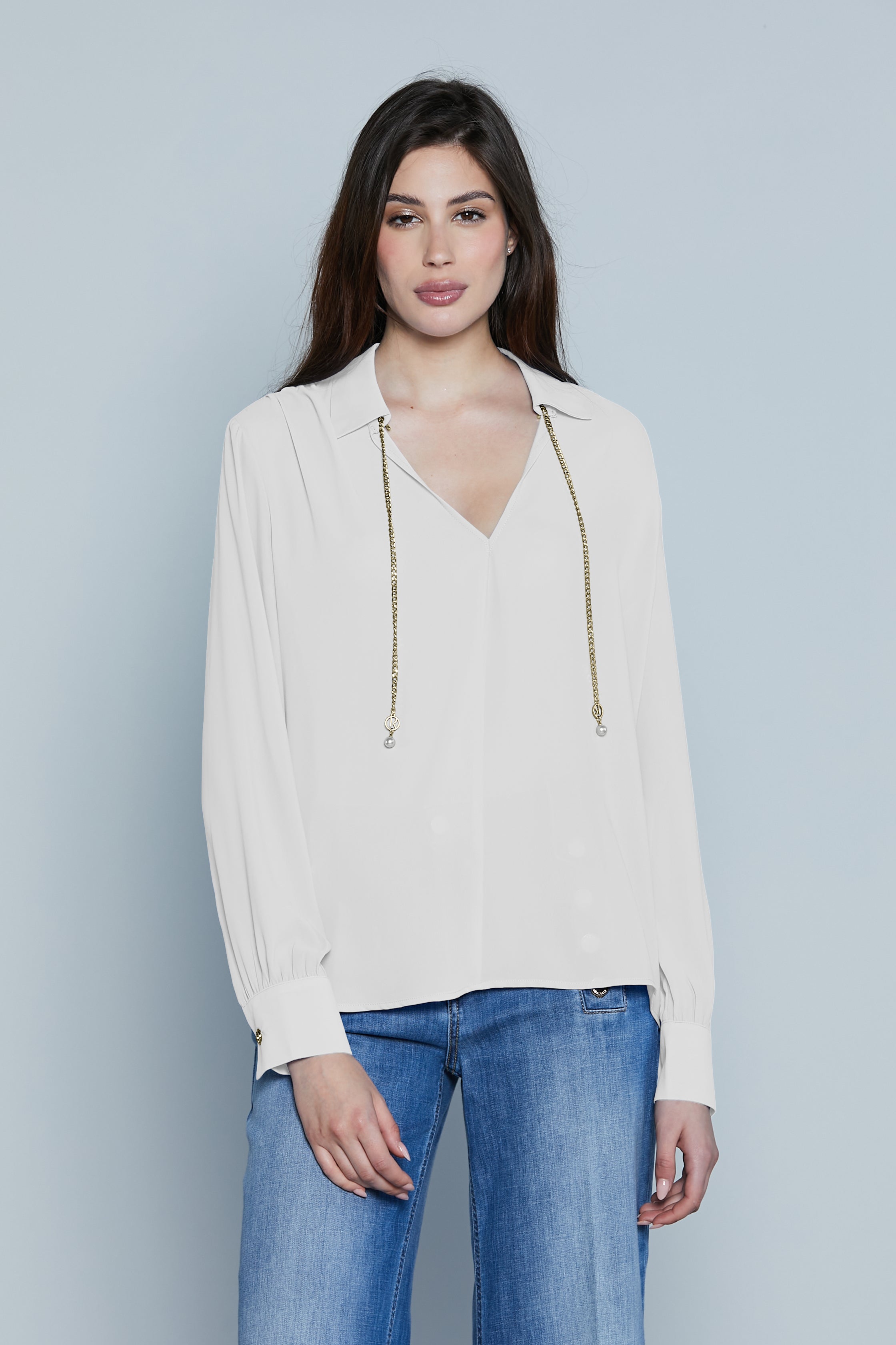 Blusa MARBELLA M/L Scollo V con Catena Logo