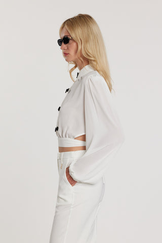 Blusa JANETTE corta maniche lunghe con fiocchi più ciondolo logo più apertura con pannello sulla schiena