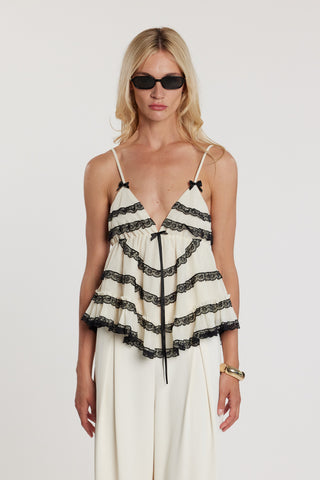 Top FEIFFE corto con taglio sul seno più rouches in pizzo più fiocchetti