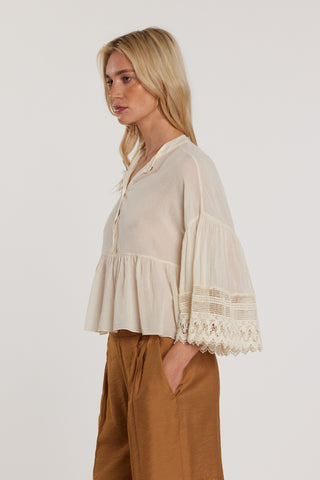 Blusa KROCHET maniche tre quarti farfalla con inserti pizzo collo coreana più balza