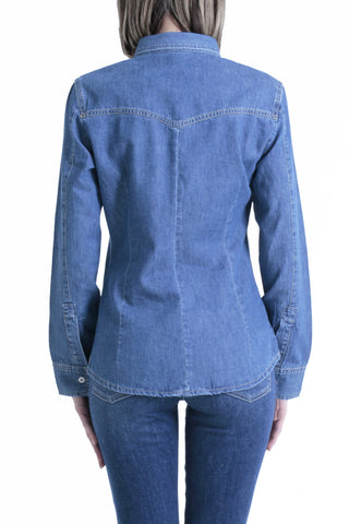 Camicia EVA_20 maniche lunghe con tasche più applicazioni strass patte slim fit denim blu