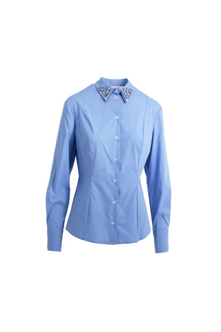 Camicia NATALIE maniche lunghe con doppio polso e collo più applicazione strass righe