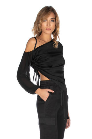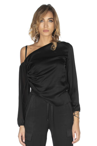 Blusa BUSHIRE monospalla manica lunga georgette con coulisse fianco
