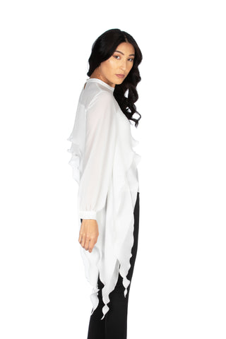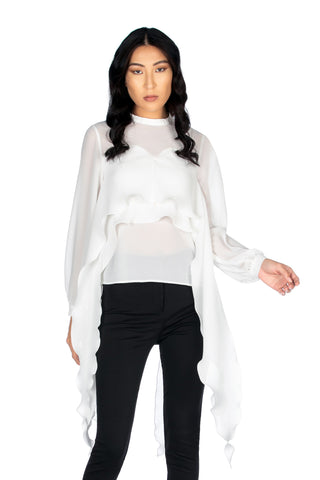 Blusa CIP manica lunga con arriccio più nastrino con pinces più volant schiena