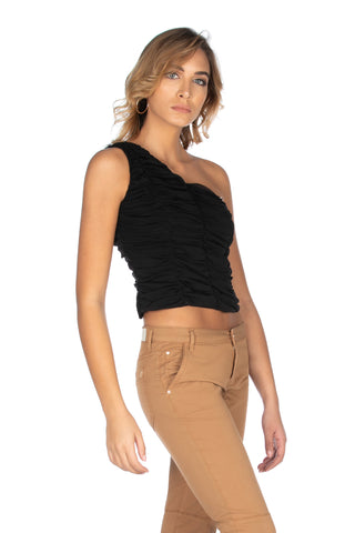 Top JASMINE corto monospalla mezza manica con pieghe più fusciacca