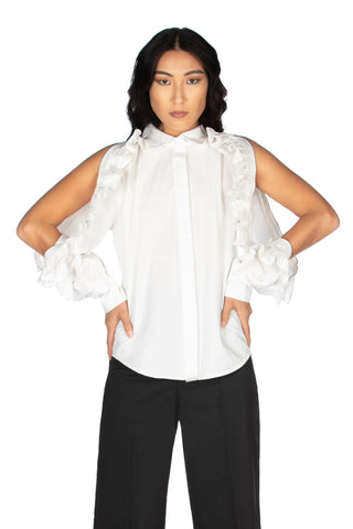 Blusa AURORITA senza maniche scollo a V profondo con volant