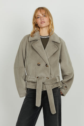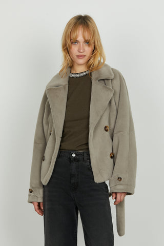 Pelliccia CLEOM eco manica lunga doppio pettocon alette più tasche più cintura