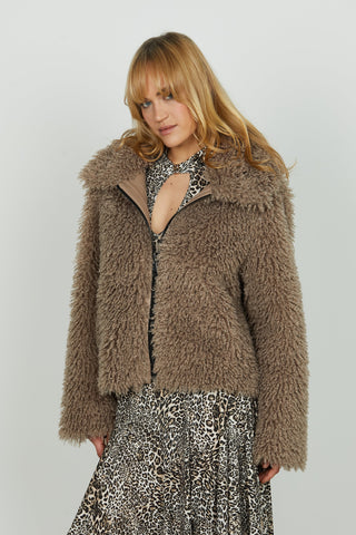 Ecopelliccia THIMOTYN manica lunga con lavorazione trecce più inserti ecopelle più zip