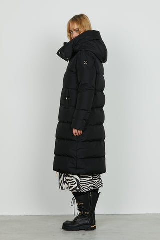 Piumino DIESSAM lungo manica lunga con ts più zip trasv. Più capp. Più ecopel.stacc. Eff.satin