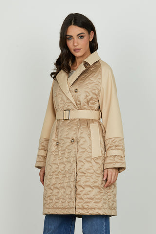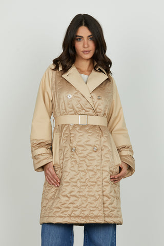 Trench DOBLY manica lunga doppio petto con cintura più tasche più impunture onda