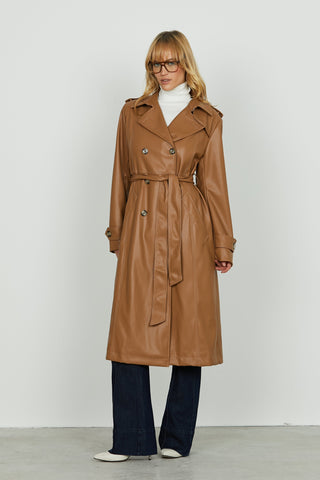 Trench TRENX lungo manica lunga doppio petto con alette più tasche più cintura ecopelle