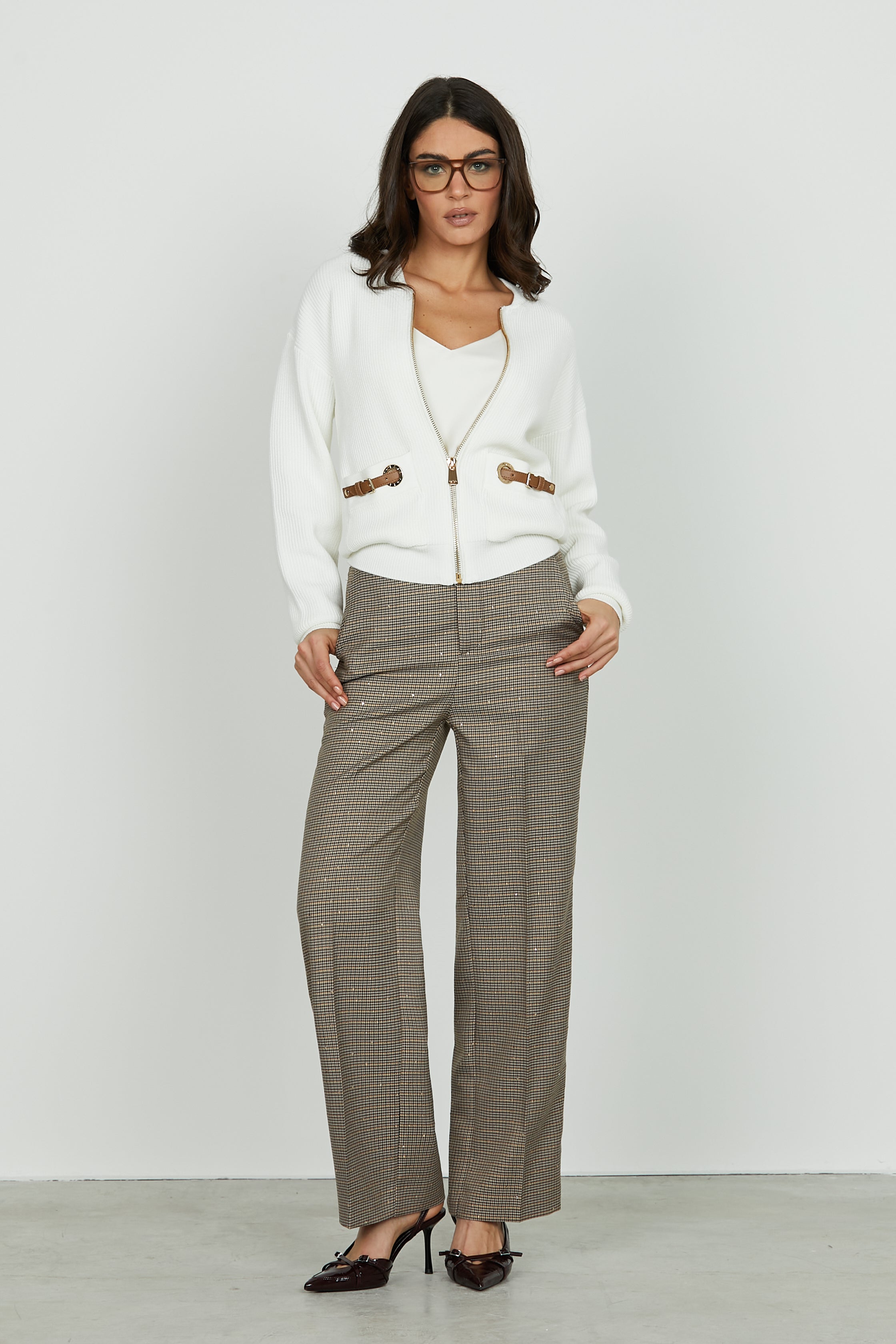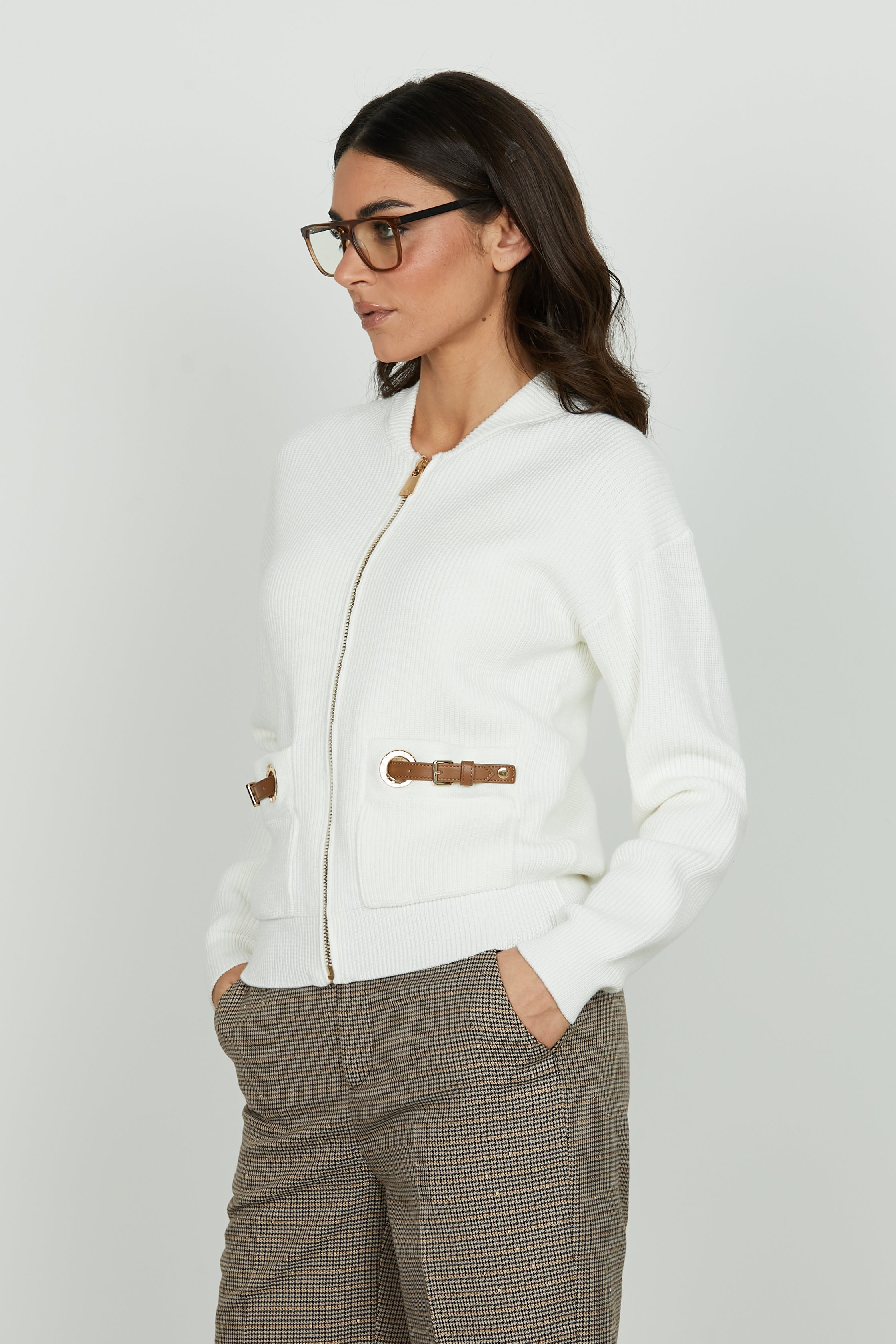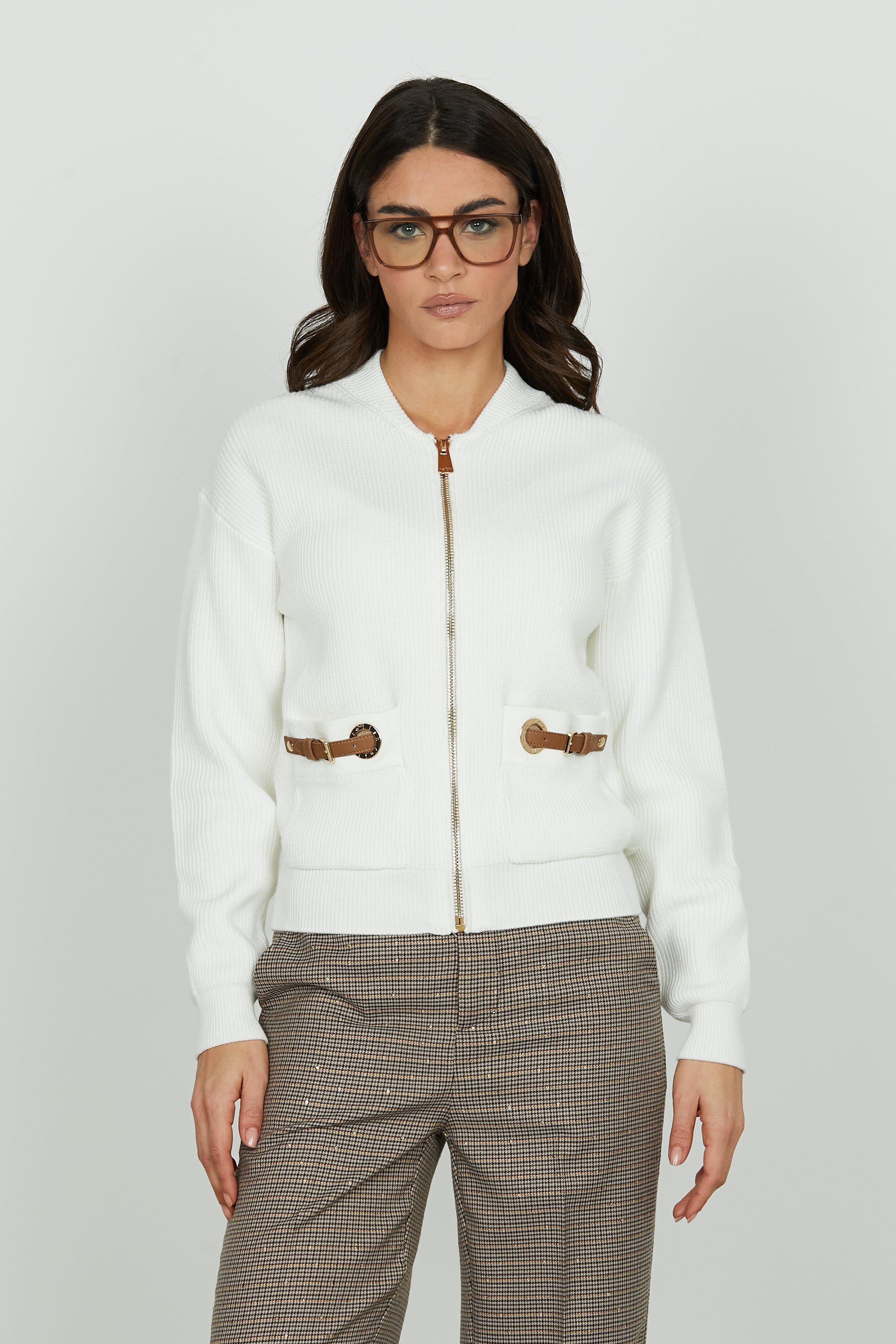 Cardigan CASTELROSSO manica lunga con zip più tasche più cinturini ecopelle