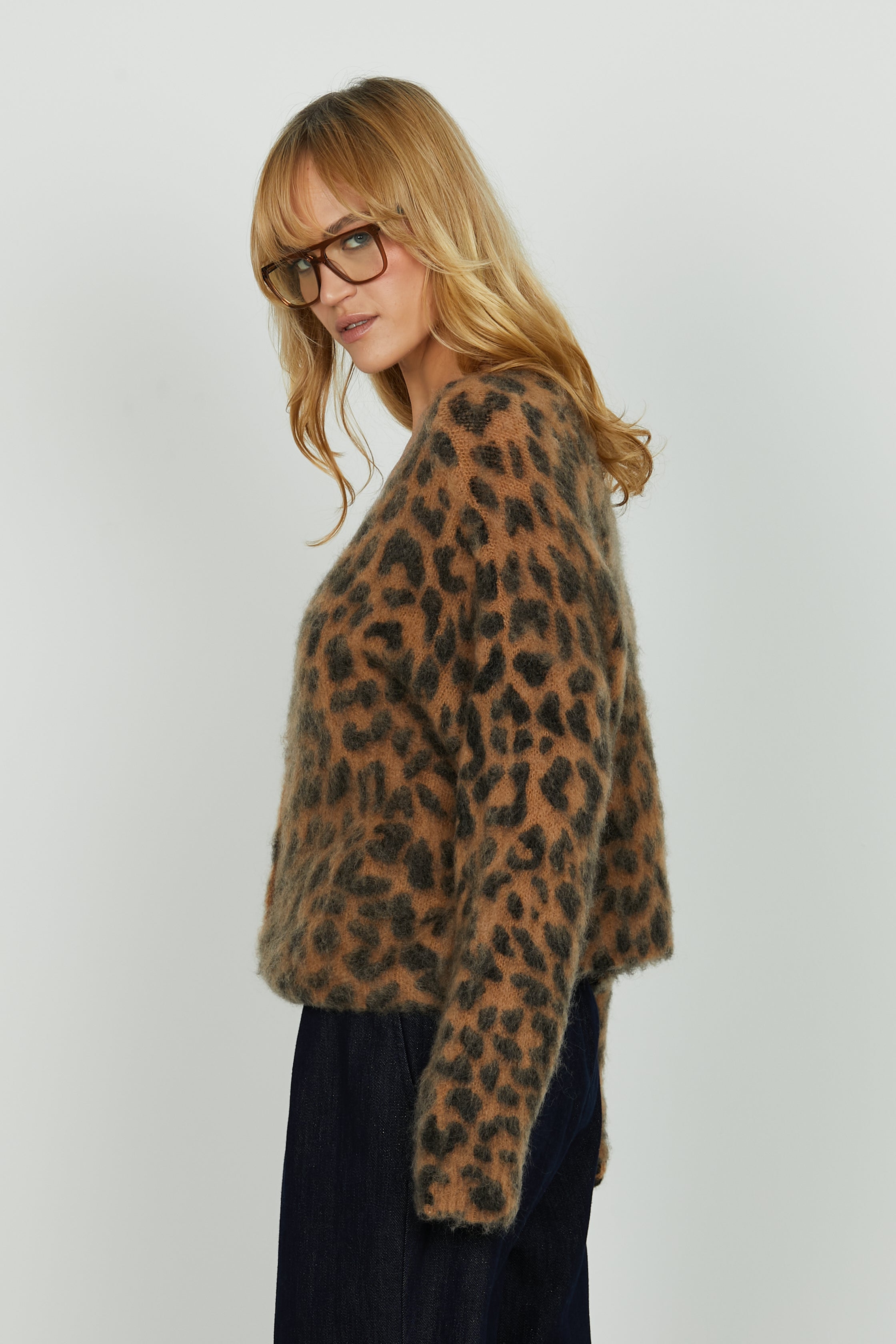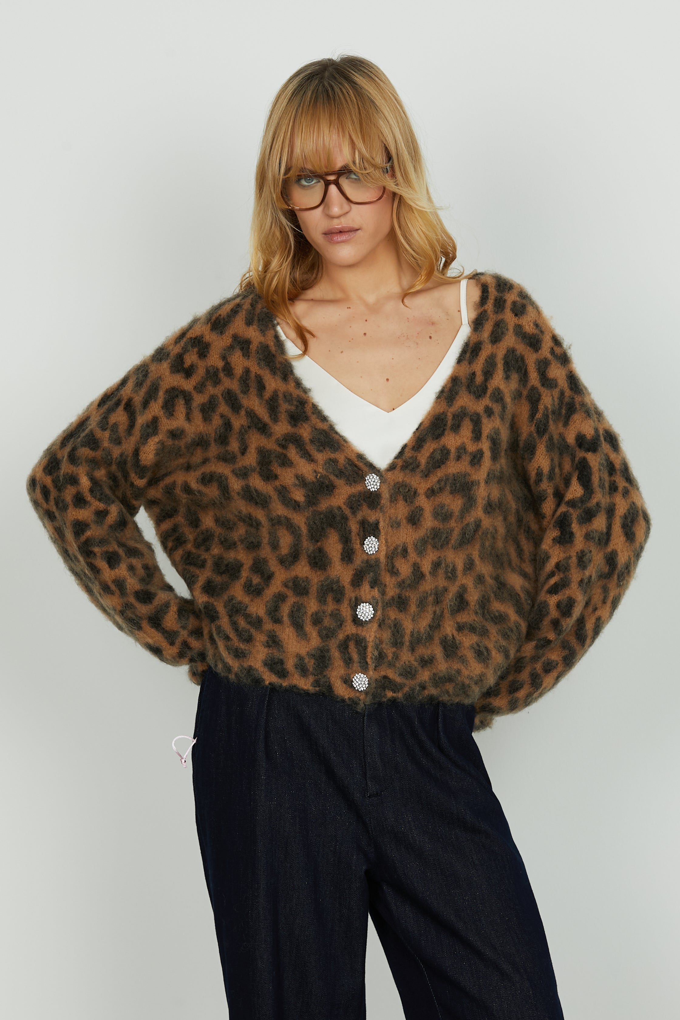 Cardigan ILUS manica lunga con bottoni gioiello fantasia animalier