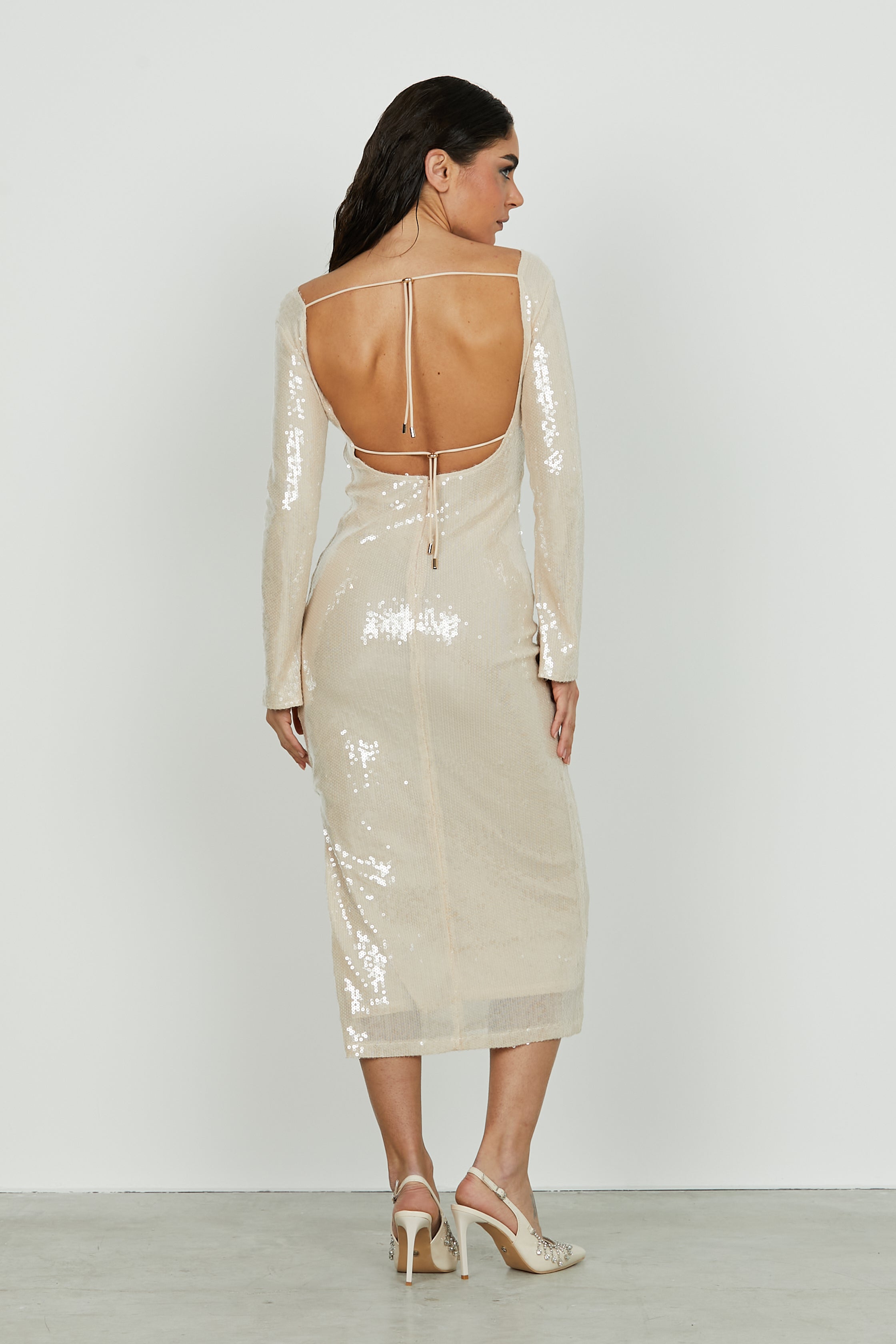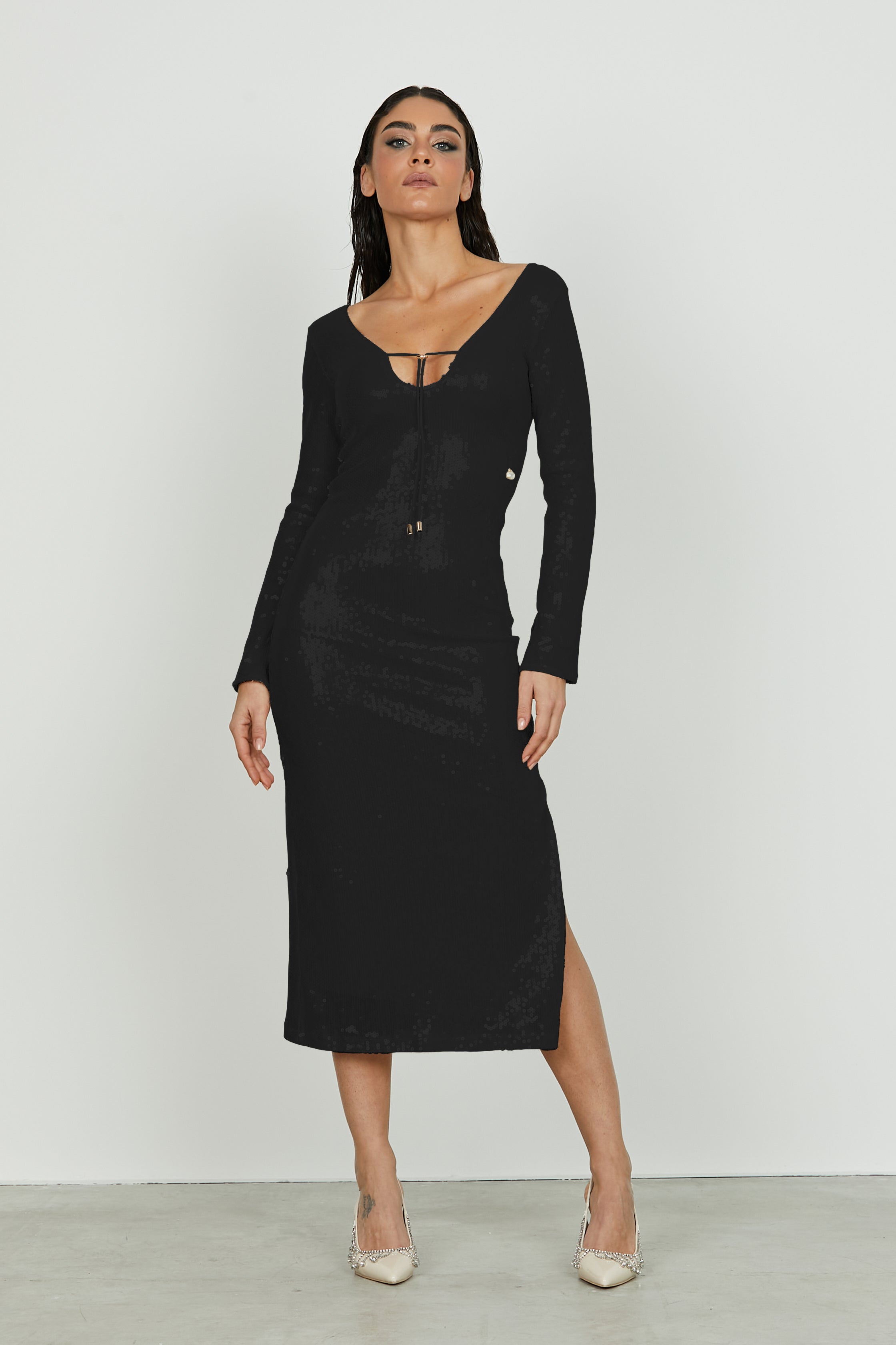 Abito MISMA lungo manica lunga full paillettes con coulisse