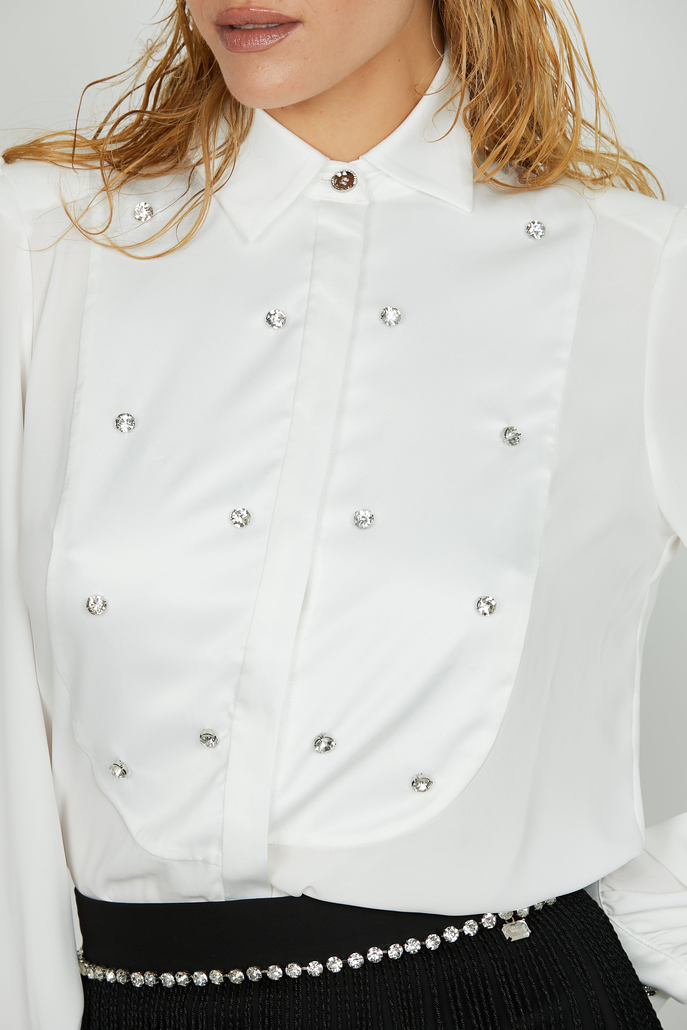 Camicia SEYSHELLES manica lunga con inserti di raso applicazioni strass