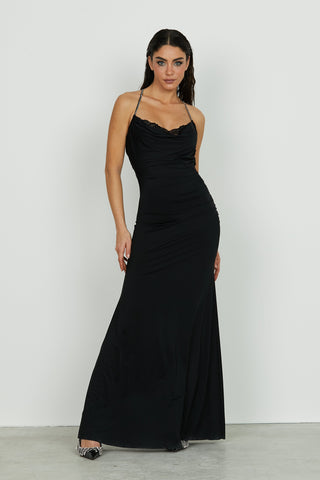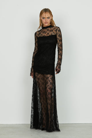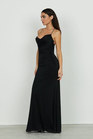 Abito PAMPAS lungo scollo morbido più bretelle strass più pizzo retro