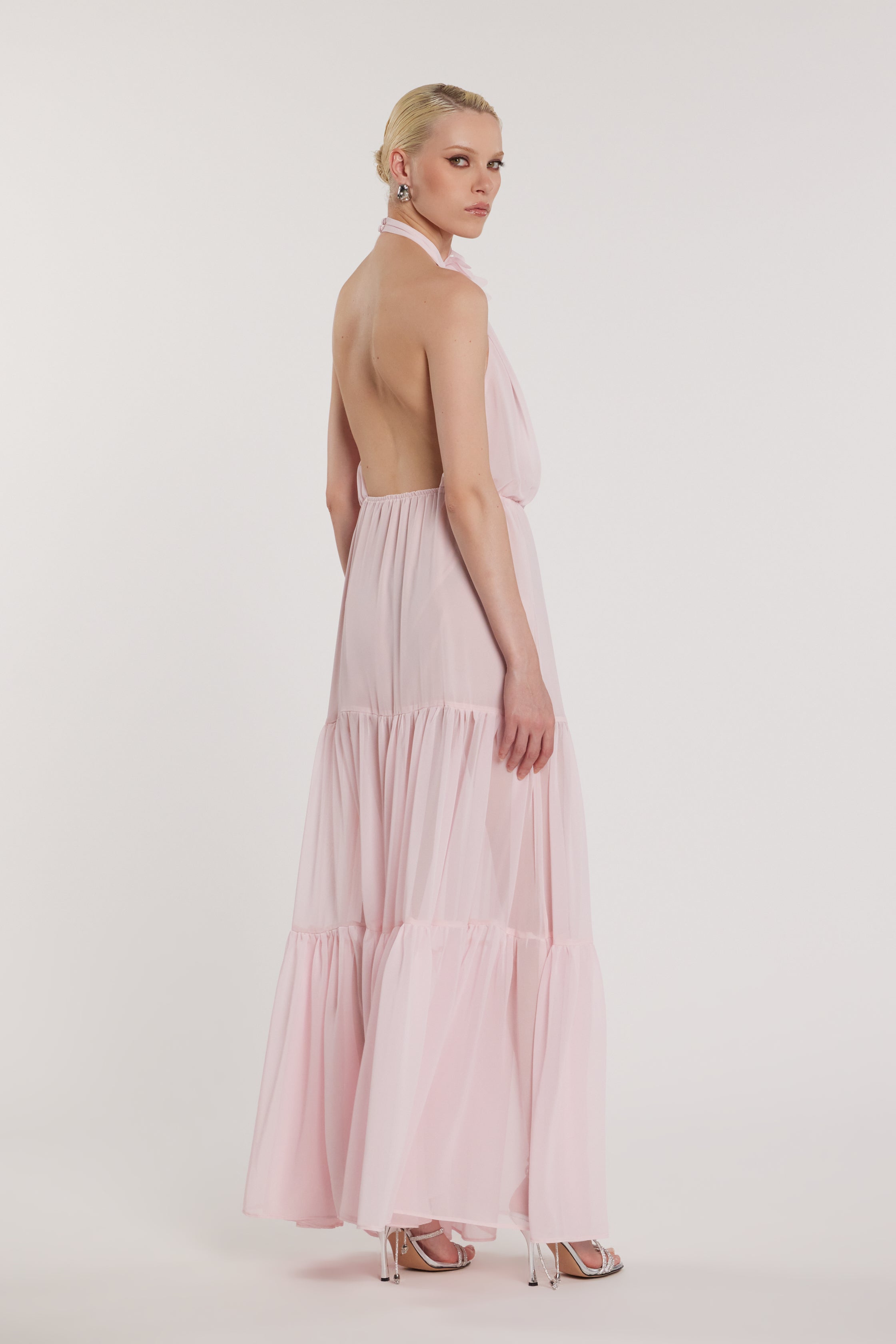 Abito Tonique lungo con balze e spilla a fiore, un modello romantico e sofisticato che dona movimento e leggerezza. Le balze creano fluidità, mentre la spilla a fiore aggiunge un dettaglio couture elegante. Perfetto per cocktail, eventi di sera o occasioni speciali, trasmette femminilità e charme raffinato.