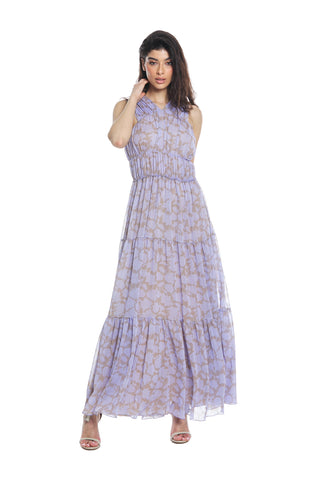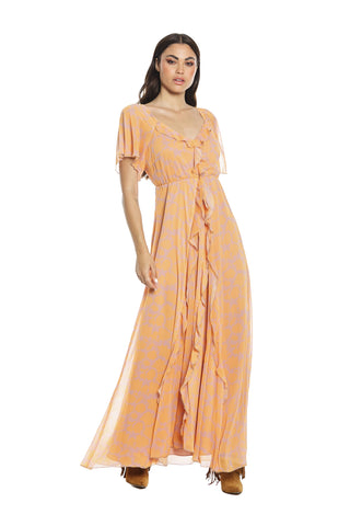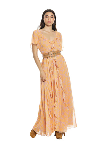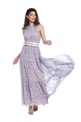 Abito HEDY lungo con spalline scollo americana con arricci più rouches f.fiori