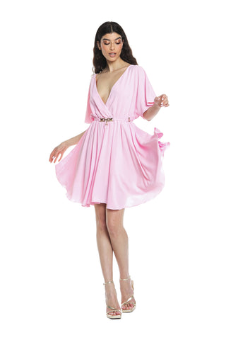 Abito PROBO corto mezza manica doppio scollo incrocio con cintura più fibbia