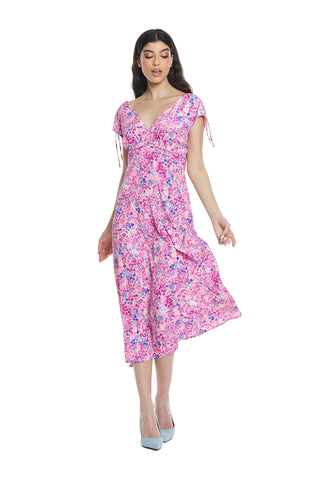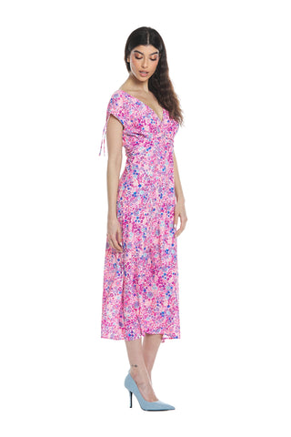 Abito GHAZI midi senza manica con coulisse doppio scollo v con pieghe fantasia fiori