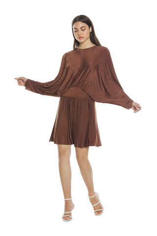 Abito CLYDES corto manica lunga pipistrello con apert.schiena più laccio plisse'