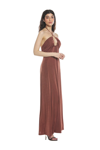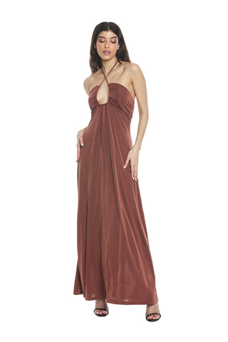 Abito COCCO midi senza manica scollo incrocio con pieghe più collana con spacco