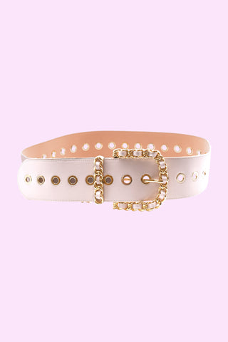 cintura WILKES_LAMI con arricci più fibbia anelli più cabochon ecopelle laminata