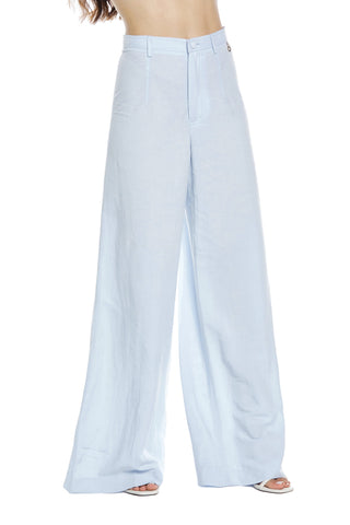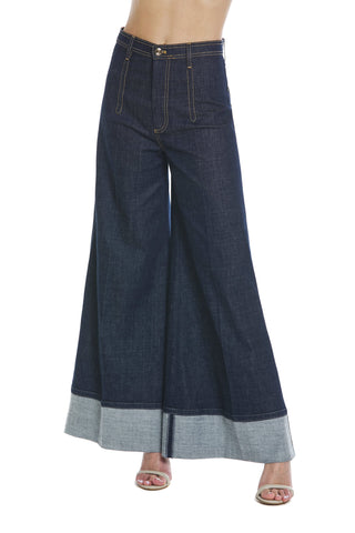 Panta SIGGY vita alta con dettagli impunture gamba palazzo denim blu