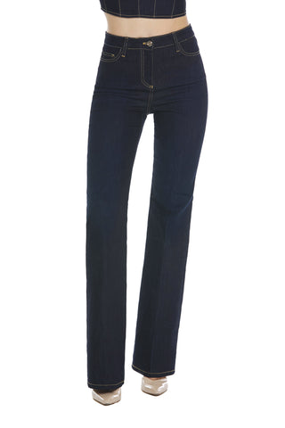Panta HARBADAM vita alta 5 tasche zampa denim blu