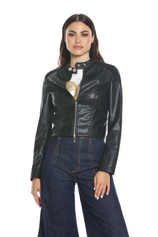 Giubbino BROWNIE manica lunga con zip con pendagli più arriccio fianchi ecopelle