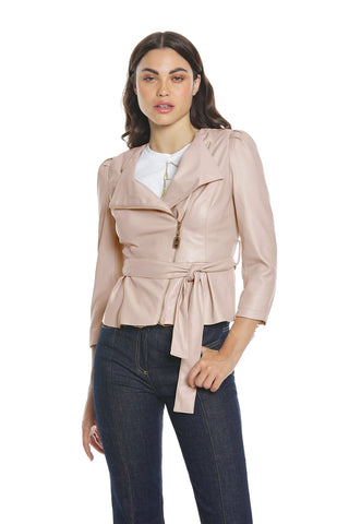 Giubbino CORAG m.3/4 sbuffo con zip trasversale più pinces più cintura ecopelle