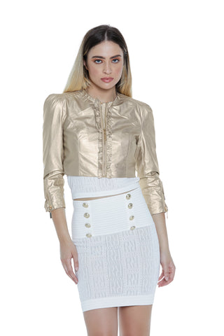 Giubbino MUISCER corto m.3/4 collo chanel più imp.spalla più zip più rouches ecop.