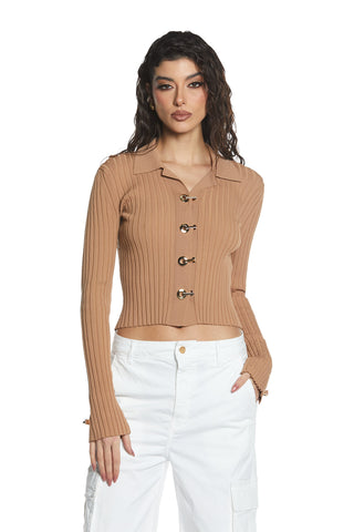 Cardigan DIASPRO manica lunga con anelli più ganci costina