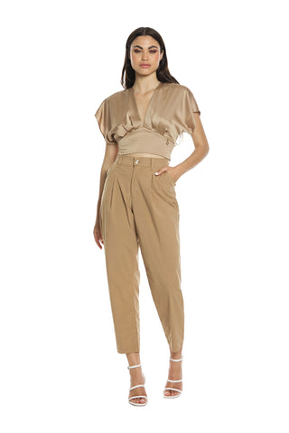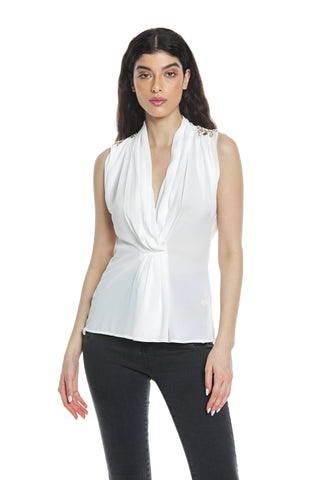 Blusa RUWAYD mezza manica aletta scollo incrocio con pieghe più applicazioni spalle