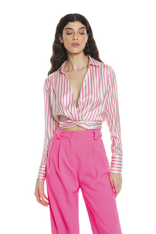 Blusa ABLA manica lunga scollo ampio incrocio più elastico più fusciacca righe