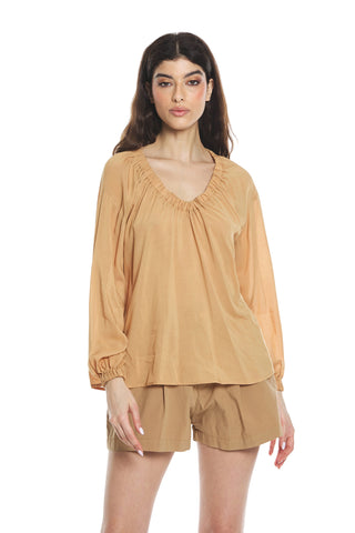 Camicia KOURI manica lunga con coulisse schiena asimmetrico