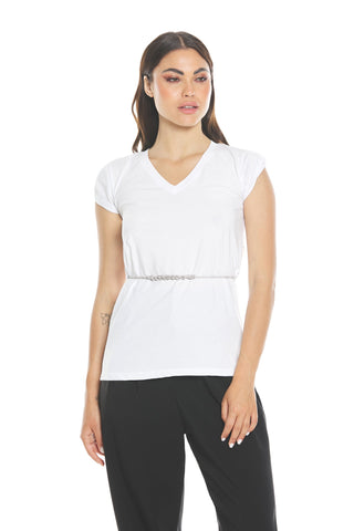 T-shirt FINGERLIME mezza manica con passante scollo v con cintura strass